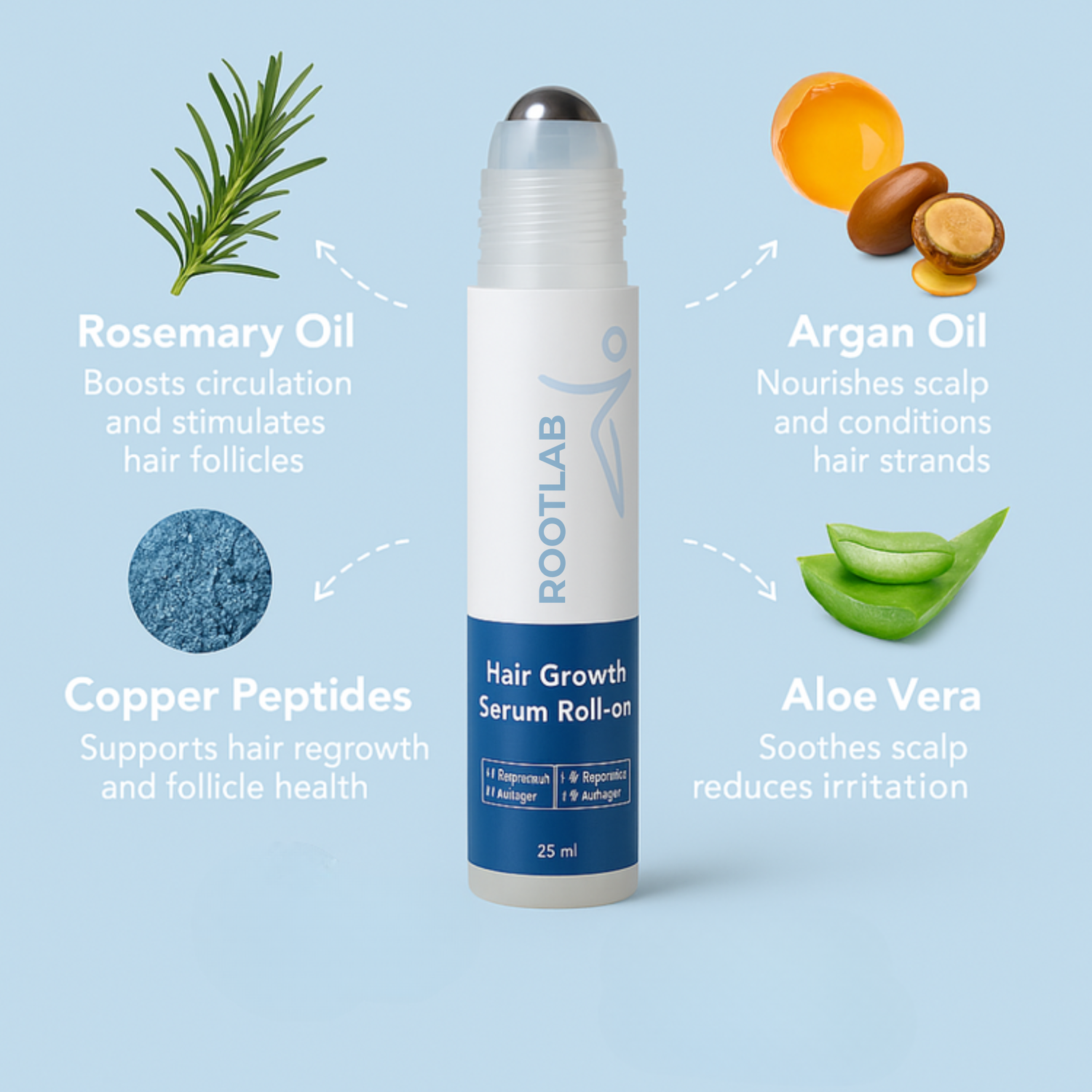 RootLabs’ precision roll-on formula targets the three root causes simultaneously — dormant follicles, poor circulation, and a stressed skin barrier.